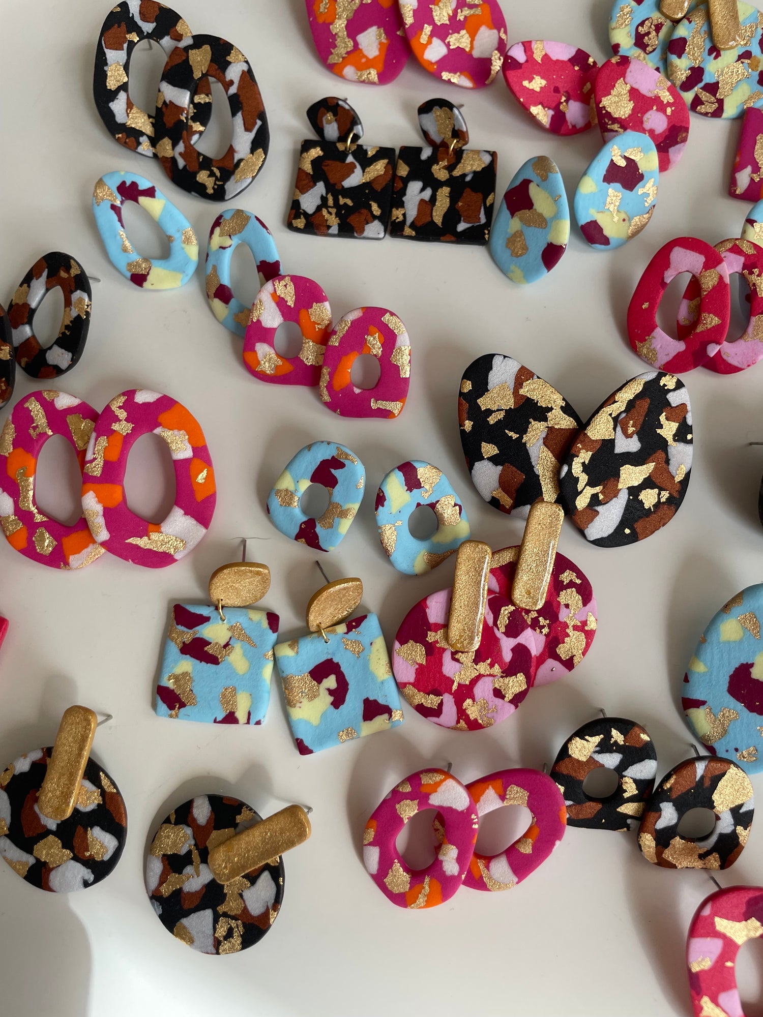 Más adelante, sin dejar la máquina de coser de lado, crea su marca de pendientes, hecho con arcilla polimérica.