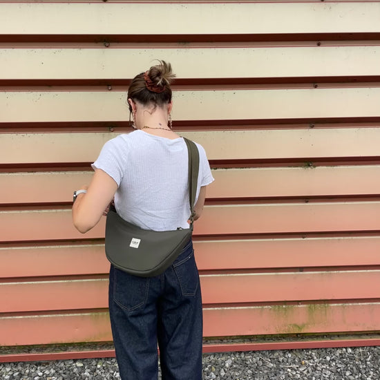 Bolso Moon en color burdeos. El tejido shoftsell es impermeable y muy resistente. Este nuevo diseño de media luna te encantará!