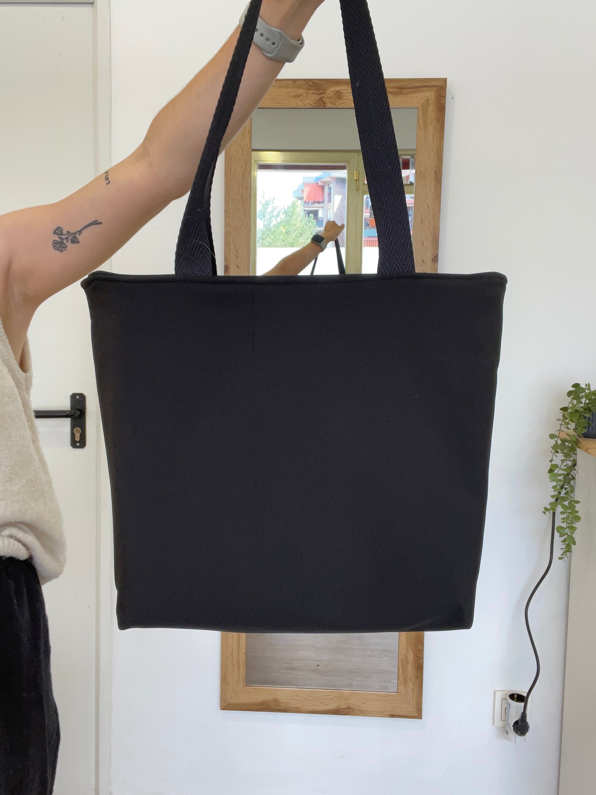 Bolso estilo shopper, en el exterior del bolso tiene 2 bolsillos con bastante capacidad y en el interior tiene 1 bolsillo doble con cremallera.