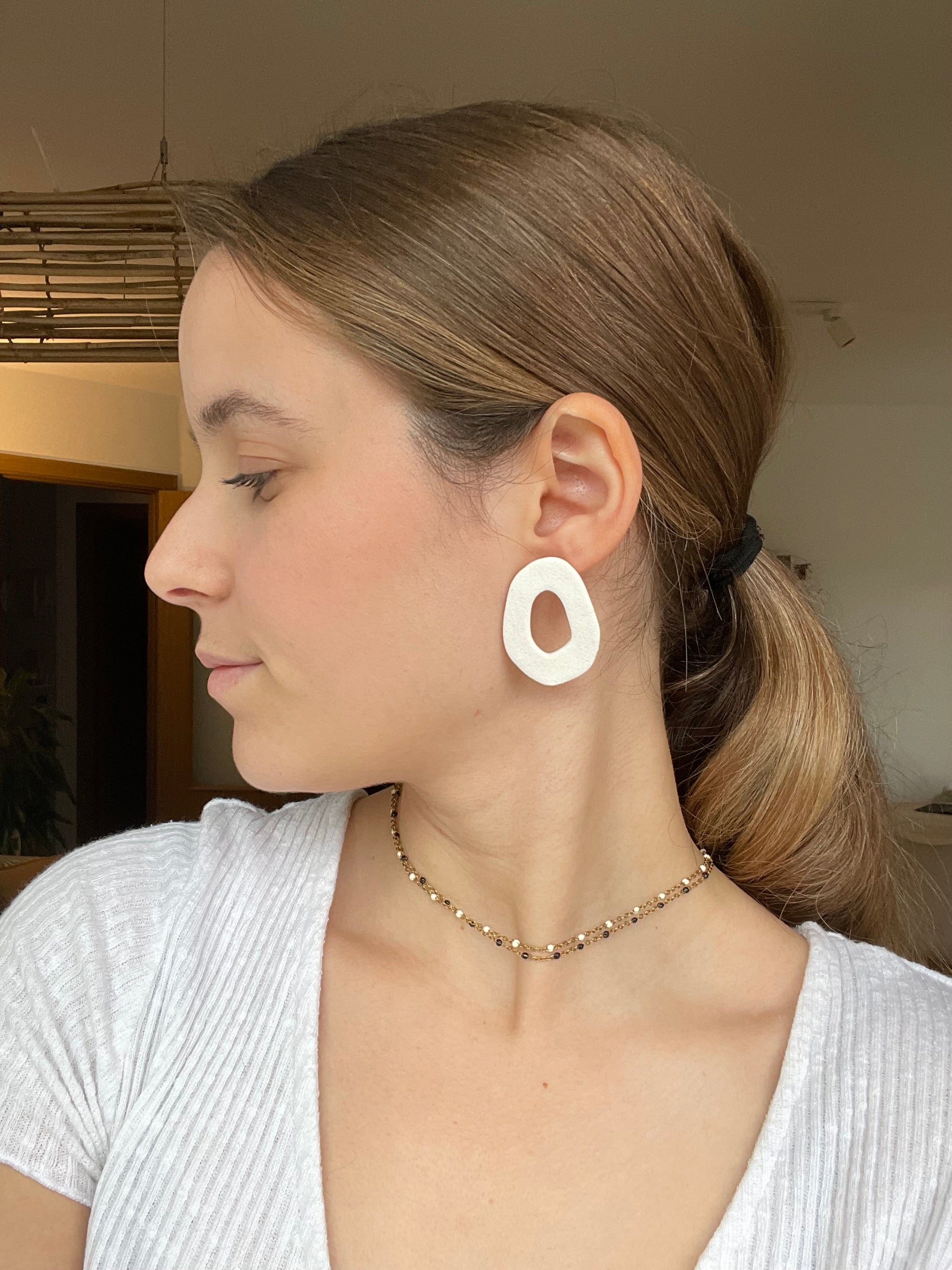 Para crear estas piezas se utiliza arcilla polimérica, al ser un material ligero hace que los pendientes no pesen.