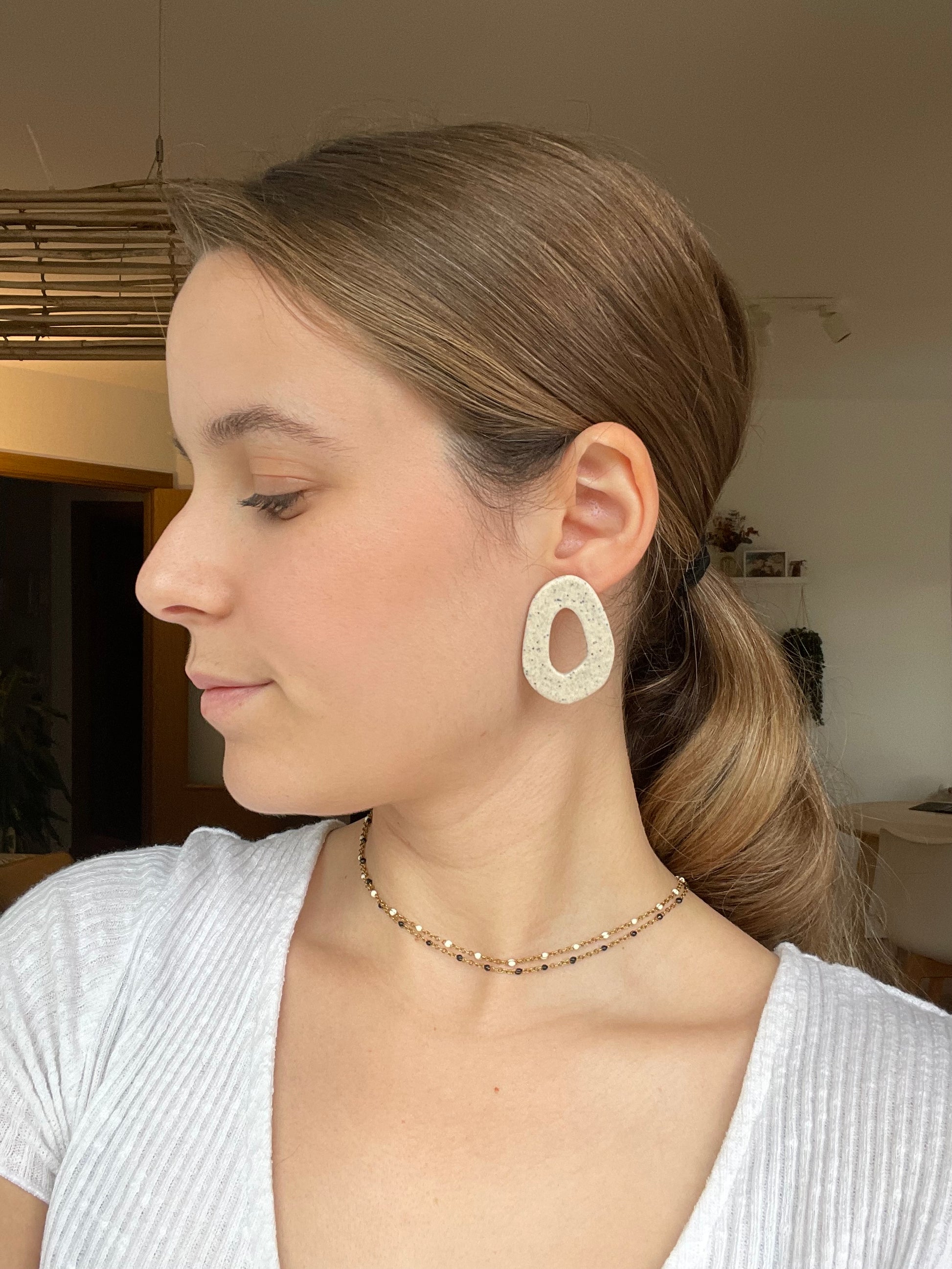 Para crear estas piezas se utiliza arcilla polimérica, al ser un material ligero hace que los pendientes no pesen.