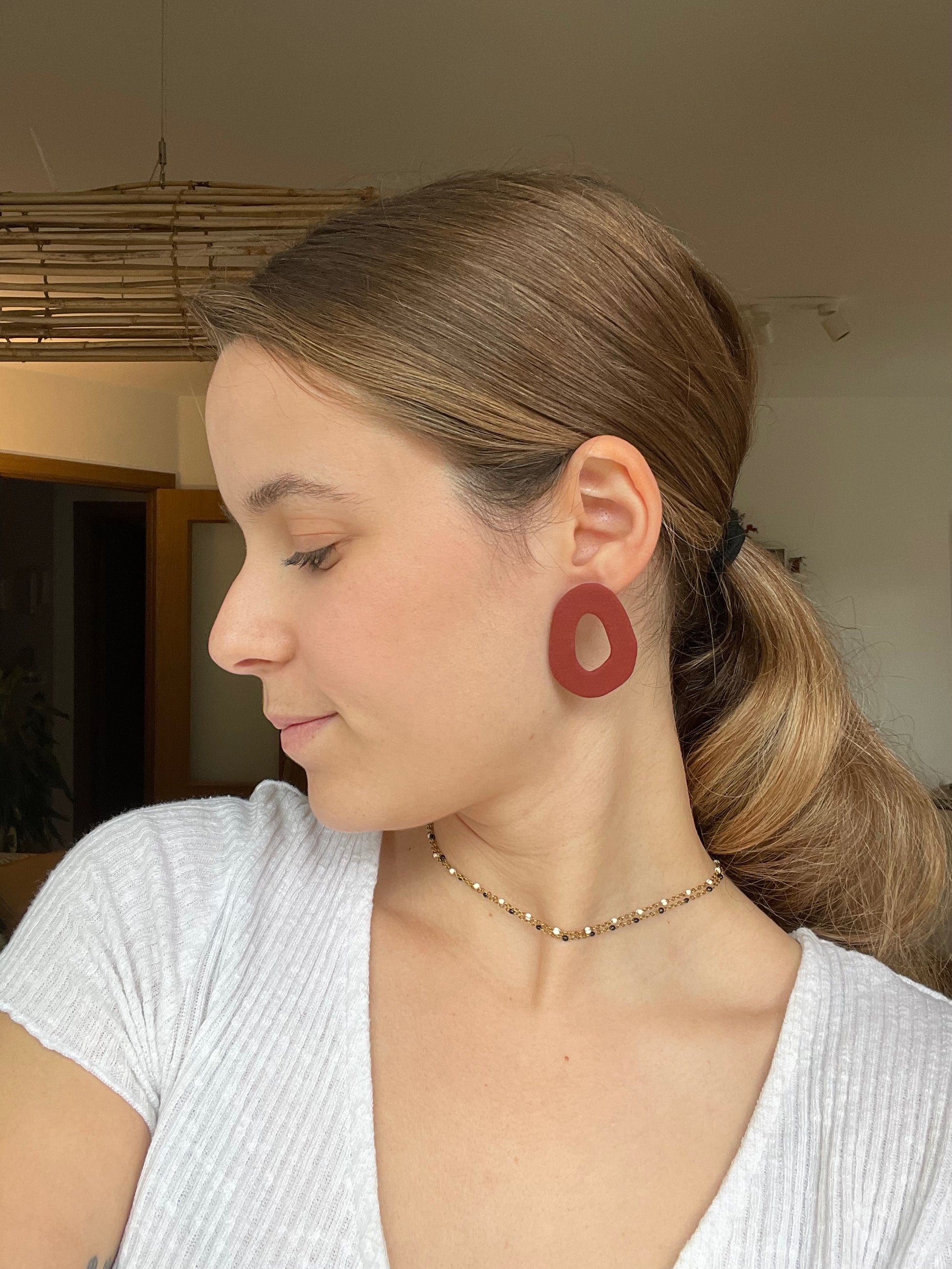 Para crear estas piezas se utiliza arcilla polimérica, al ser un material ligero hace que los pendientes no pesen.