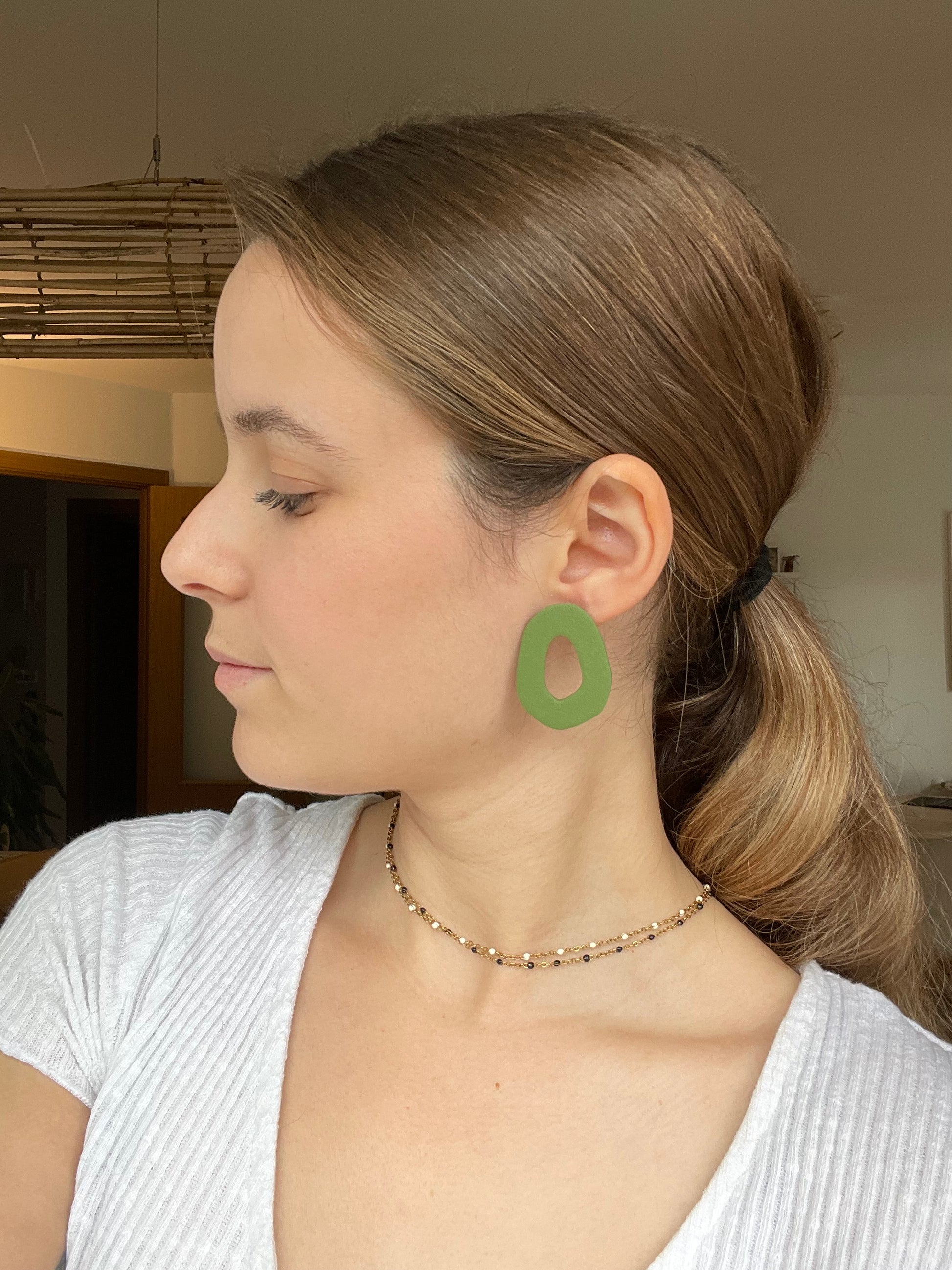 Para crear estas piezas se utiliza arcilla polimérica, al ser un material ligero hace que los pendientes no pesen.