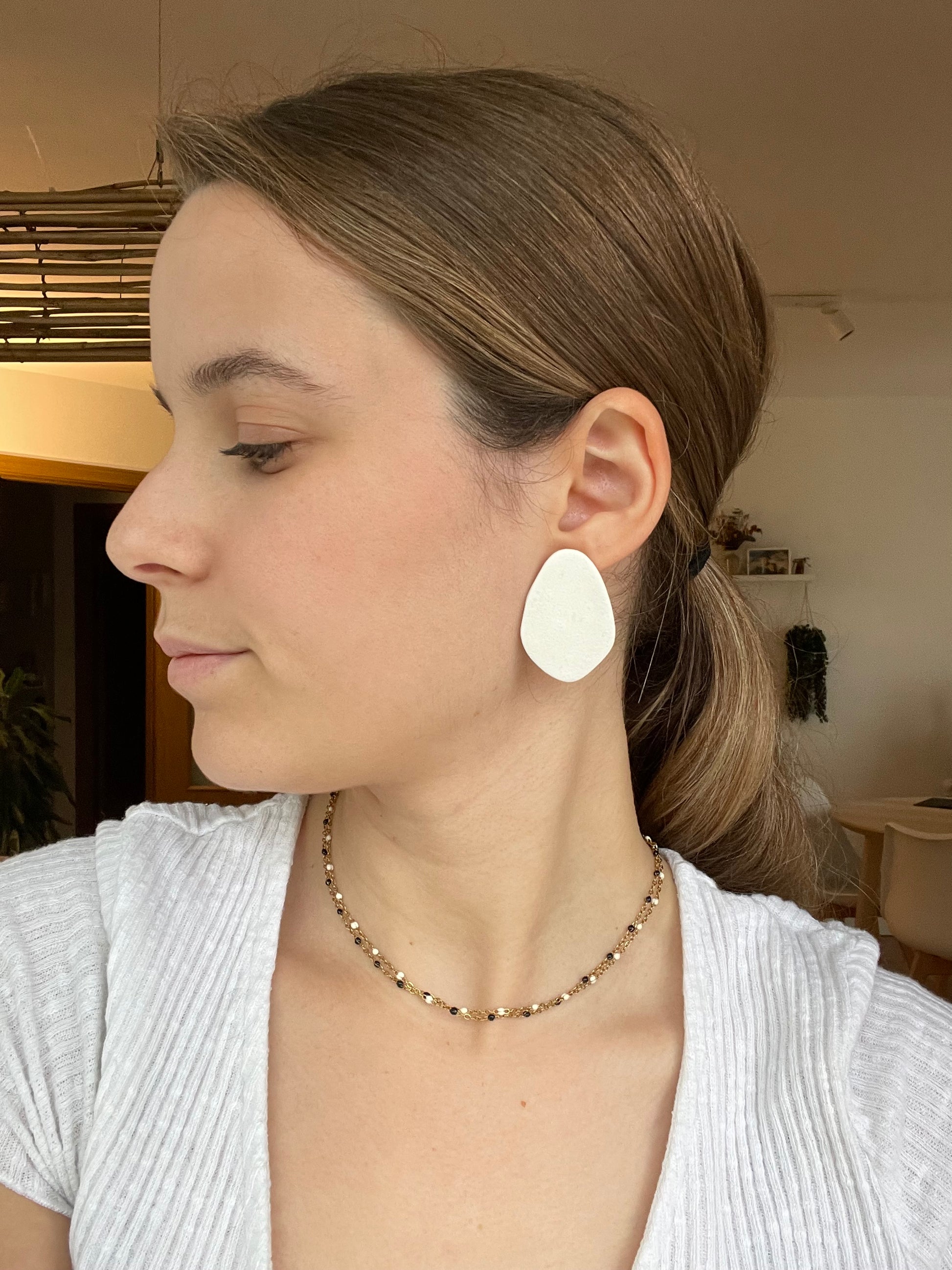Para crear estas piezas se utiliza arcilla polimérica, al ser un material ligero hace que los pendientes no pesen.