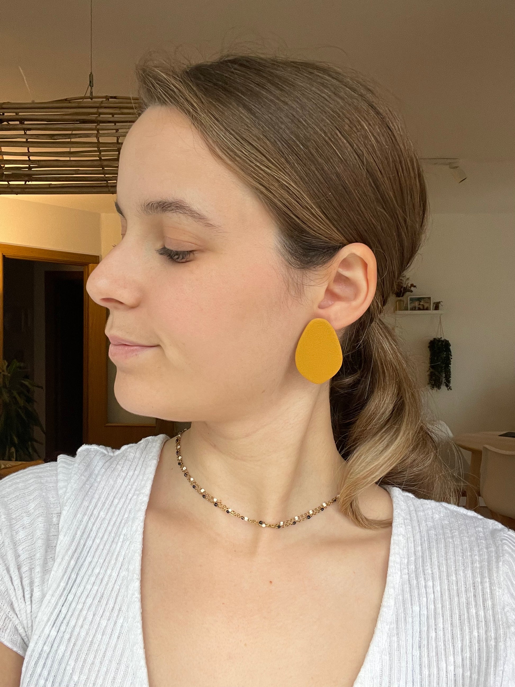 Para crear estas piezas se utiliza arcilla polimérica, al ser un material ligero hace que los pendientes no pesen.