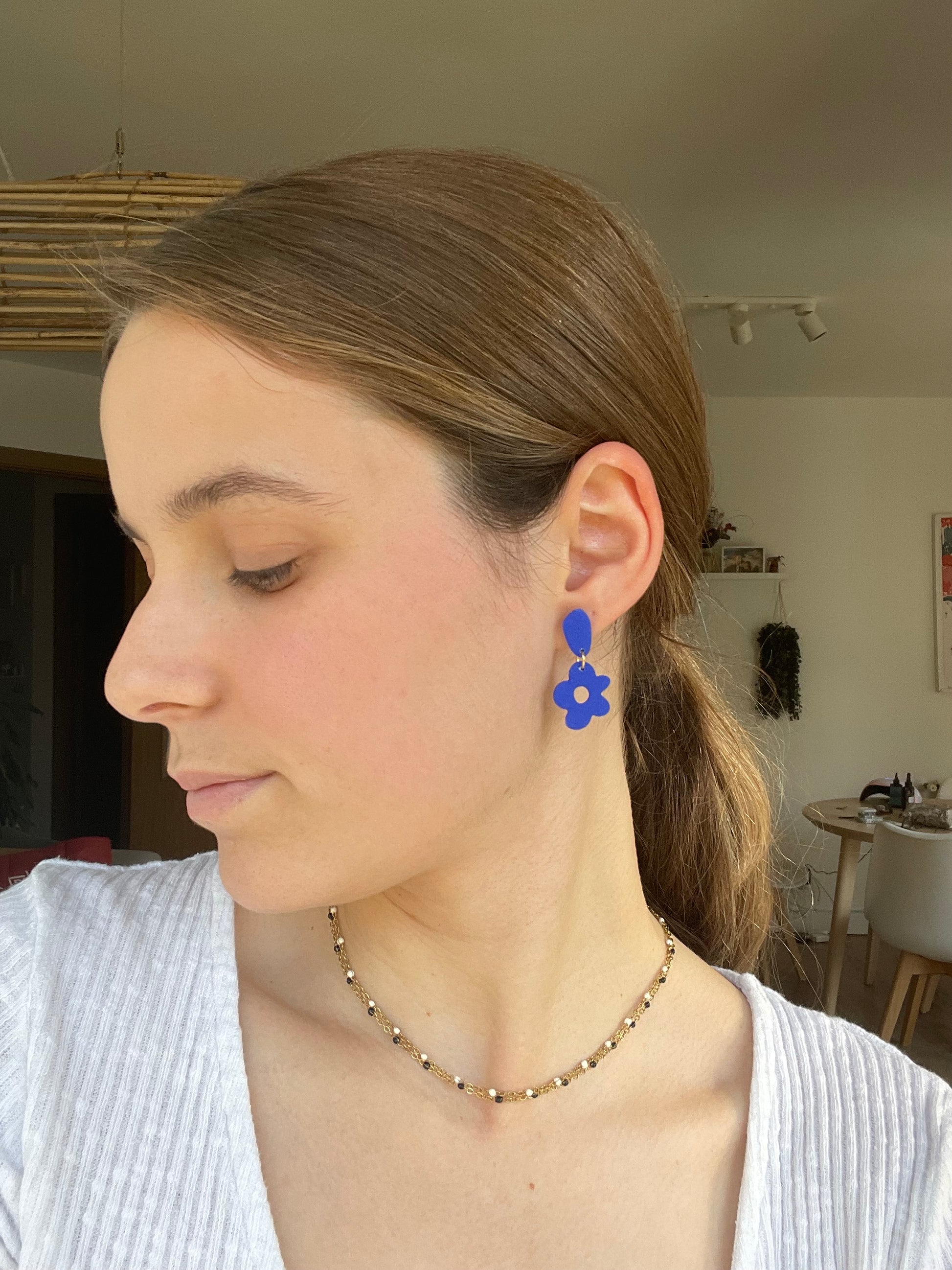 Para crear estas piezas se utiliza arcilla polimérica, al ser un material ligero hace que los pendientes no pesen.