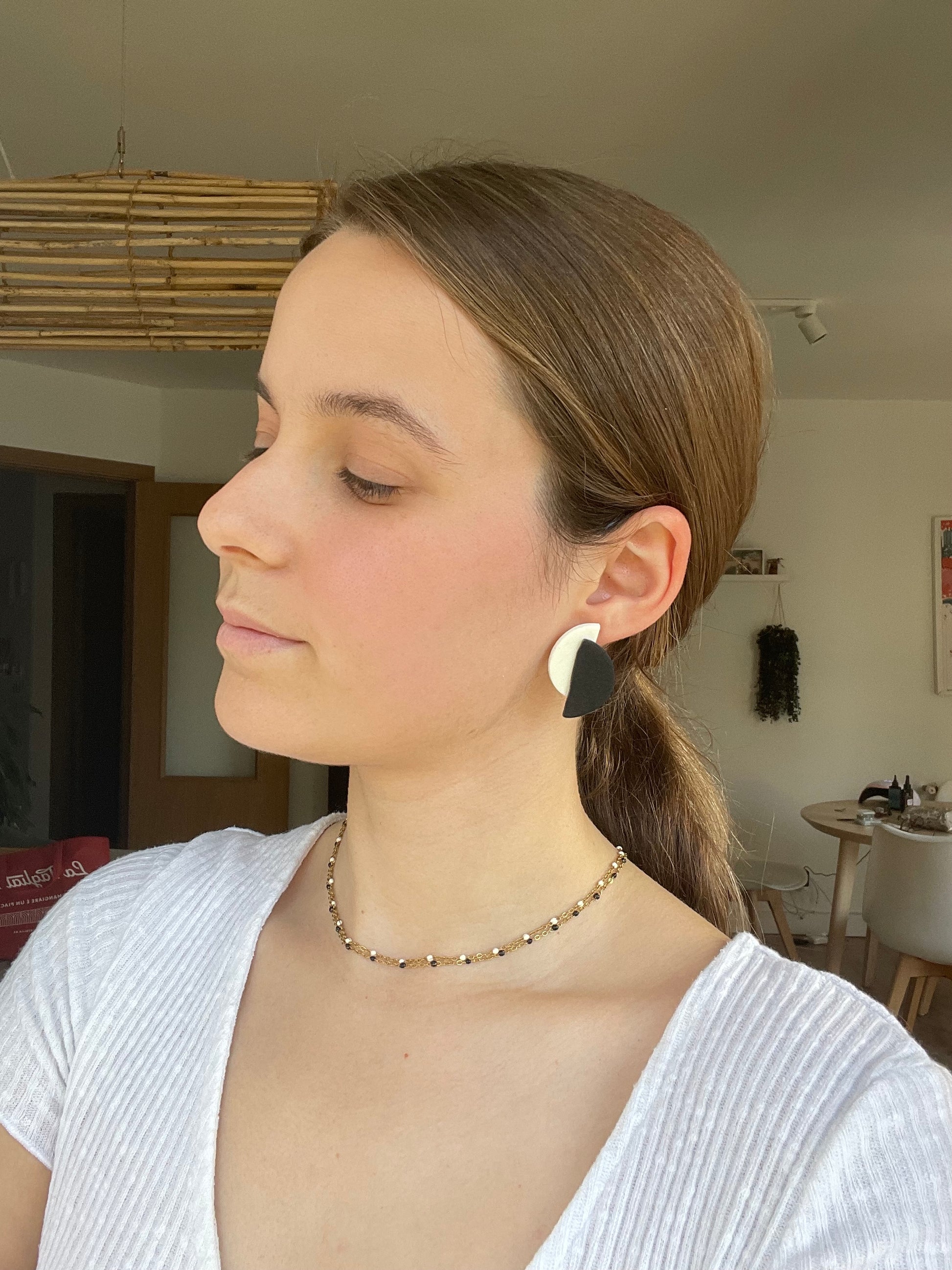 Para crear estas piezas se utiliza arcilla polimérica, al ser un material ligero hace que los pendientes no pesen.