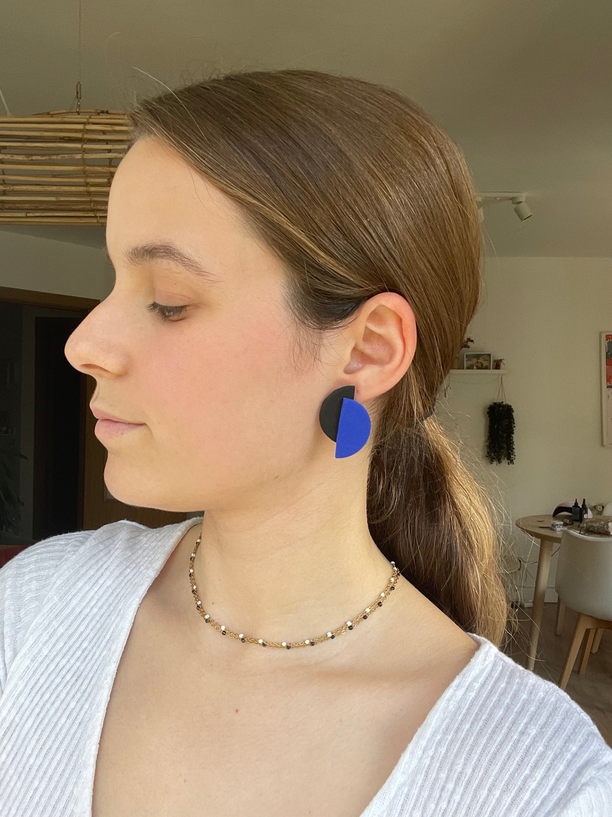 Para crear estas piezas se utiliza arcilla polimérica, al ser un material ligero hace que los pendientes no pesen.