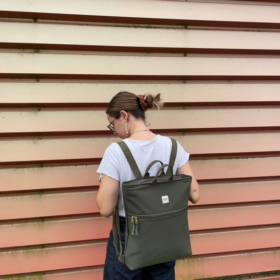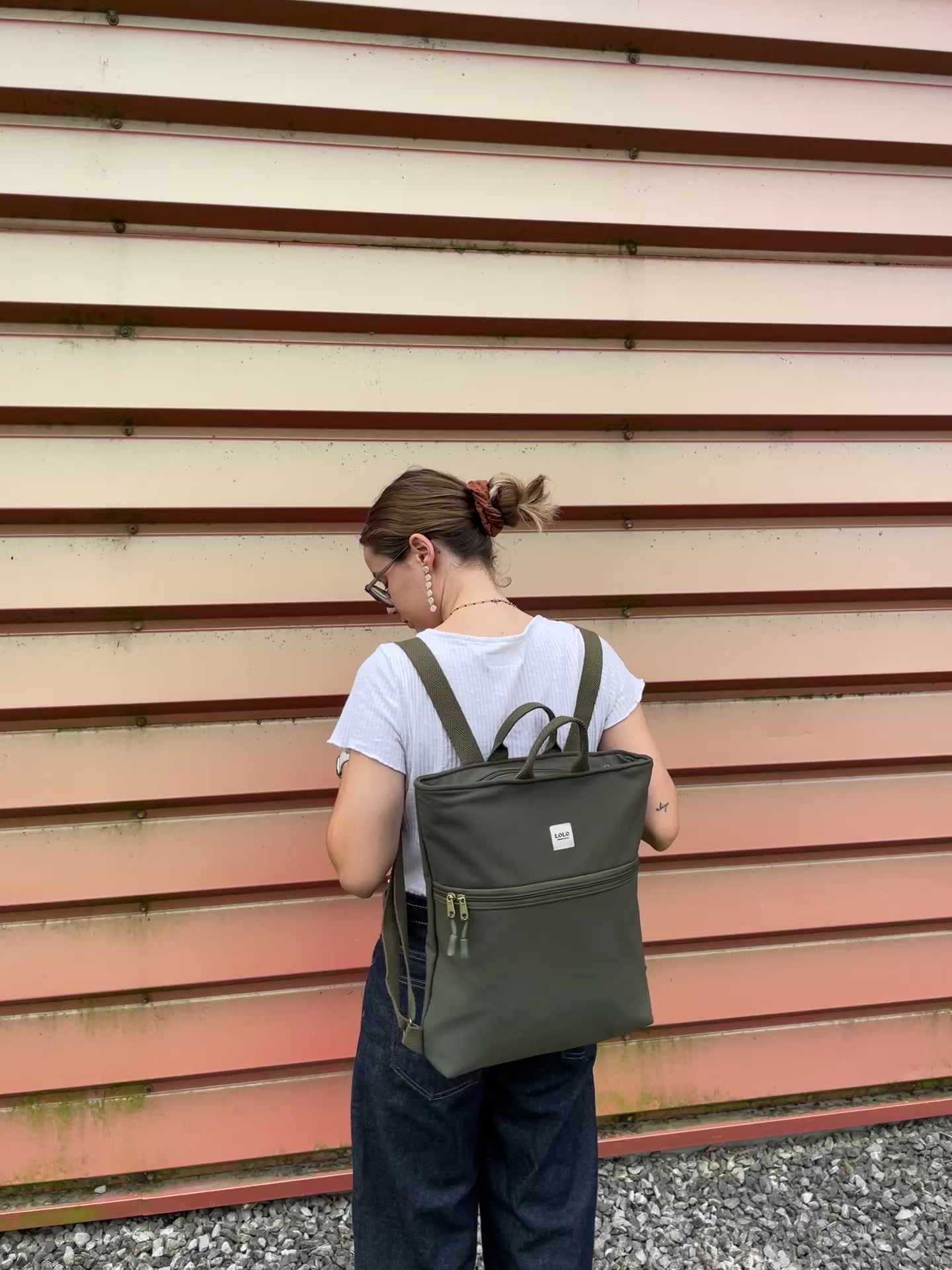 Mochila en color verde botella. El tejido shoftsell es totalmente impermeable y muy resistente.