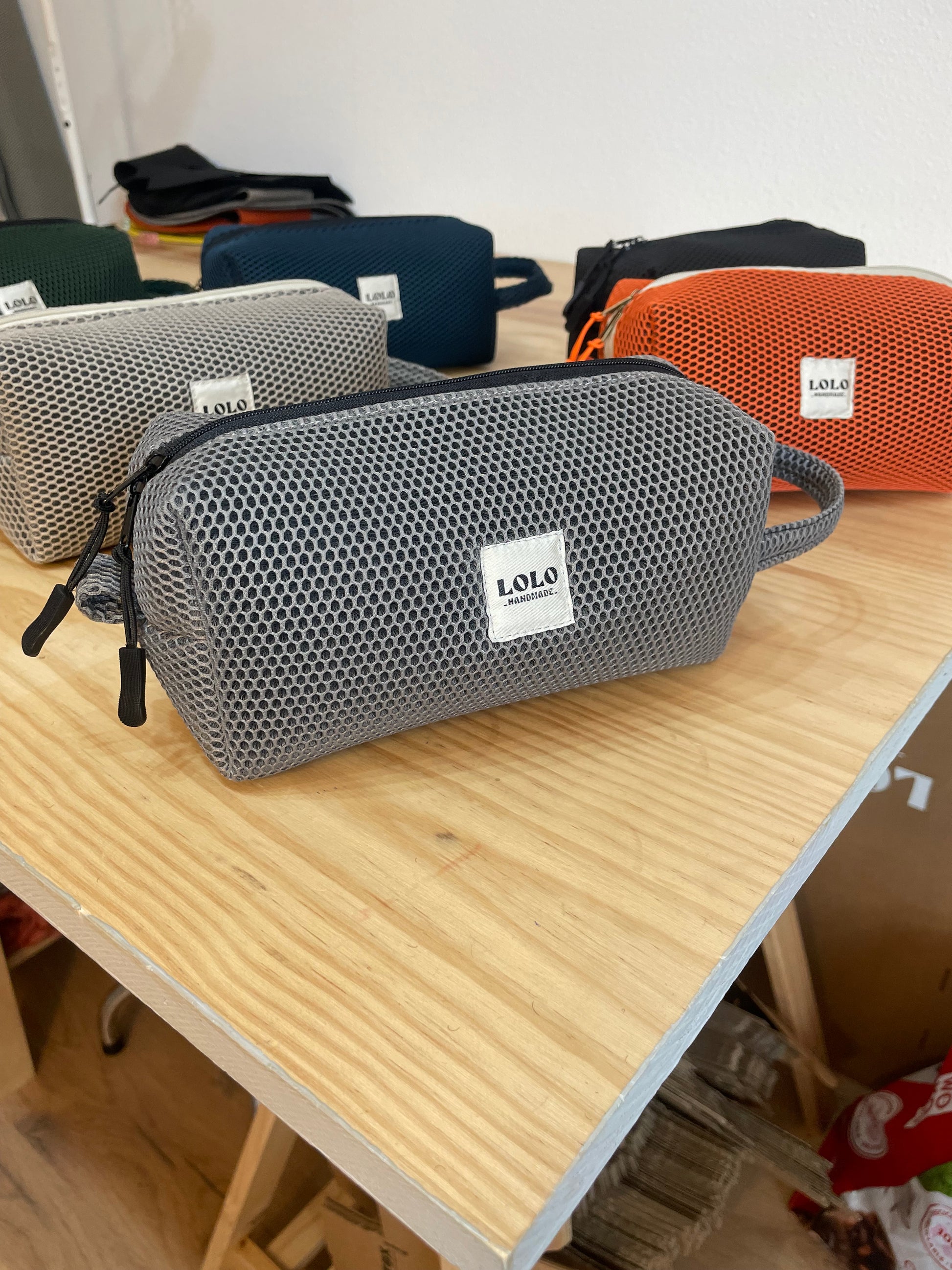 Neceser de malla 3D, forro resistente al agua. Tiene una tira para poder cogerlo y colgarlo donde quieras.