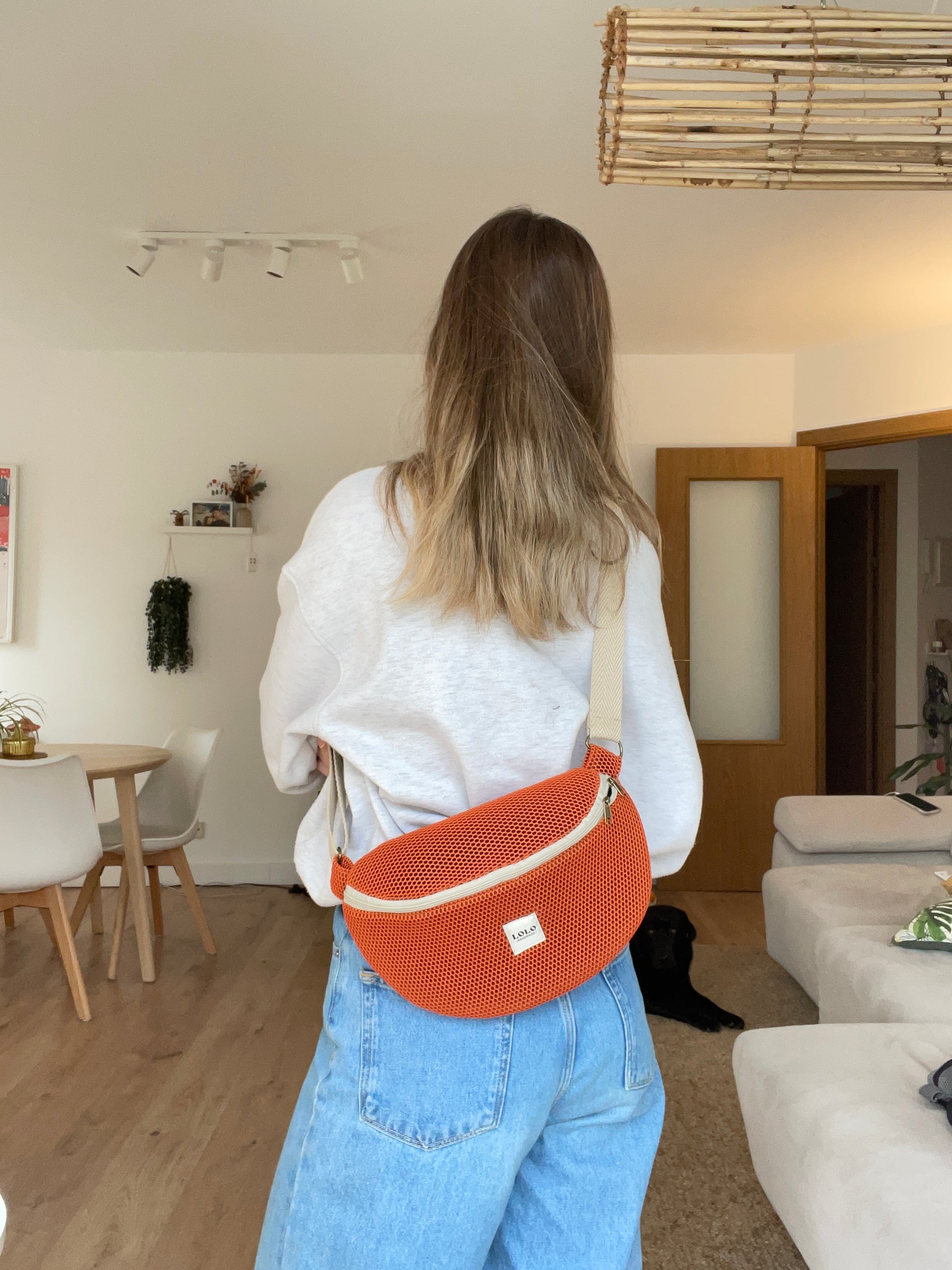 -Bolsillo con cremallera en la parte de atrás de la riñonera.